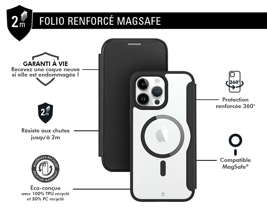 Grâce à la puissance de son système aimanté renforcé, vous pourrez fixer votre coque sur tous les accessoires magnétiques de l’écosystème MagSafe : chargeur sans fil, support voiture, stand vidéo, etc…