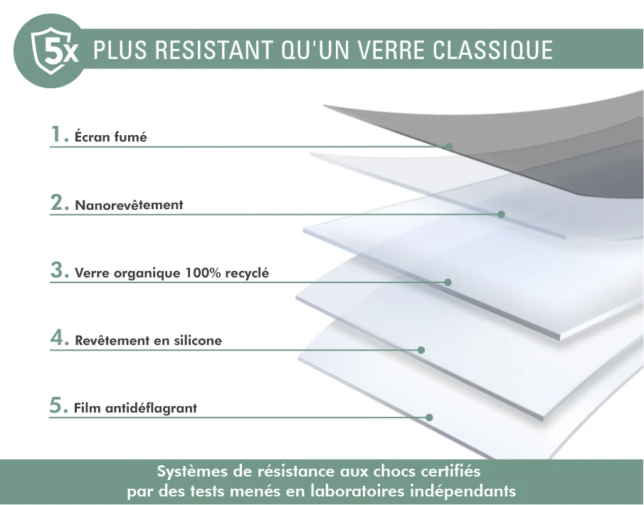 5 fois plus résistant qu’un verre classique, l’indice de dureté du verre organique en fait le protège écran le plus résistant du marché. Conception exclusive qui combine les meilleurs matériaux, traitements et revêtements pour garantir le plus haut niveau de résistance aux rayures, à la pression et aux chocs.