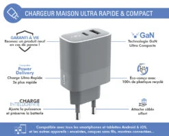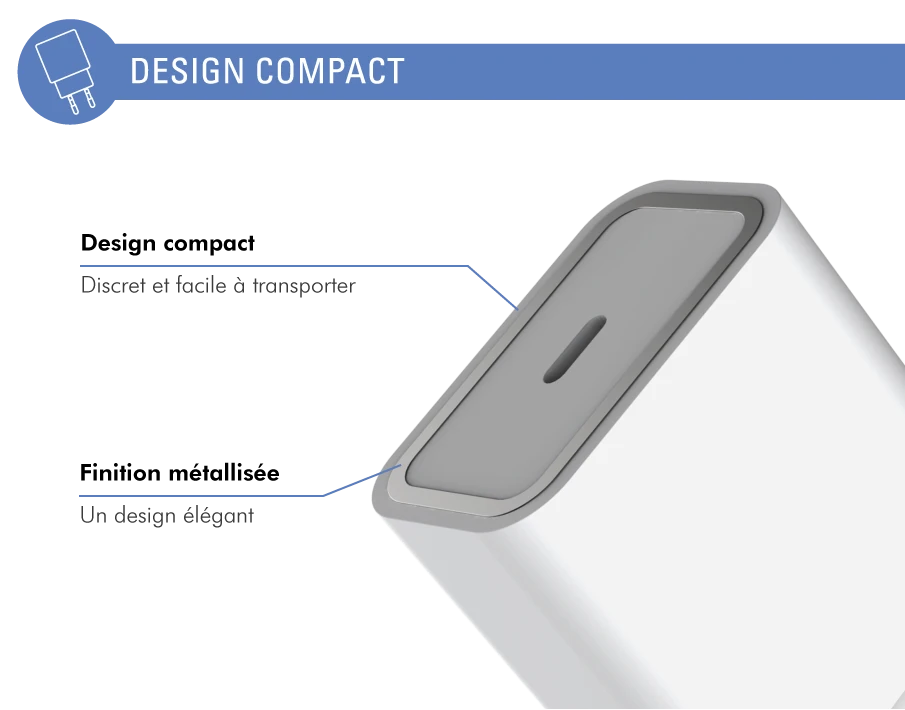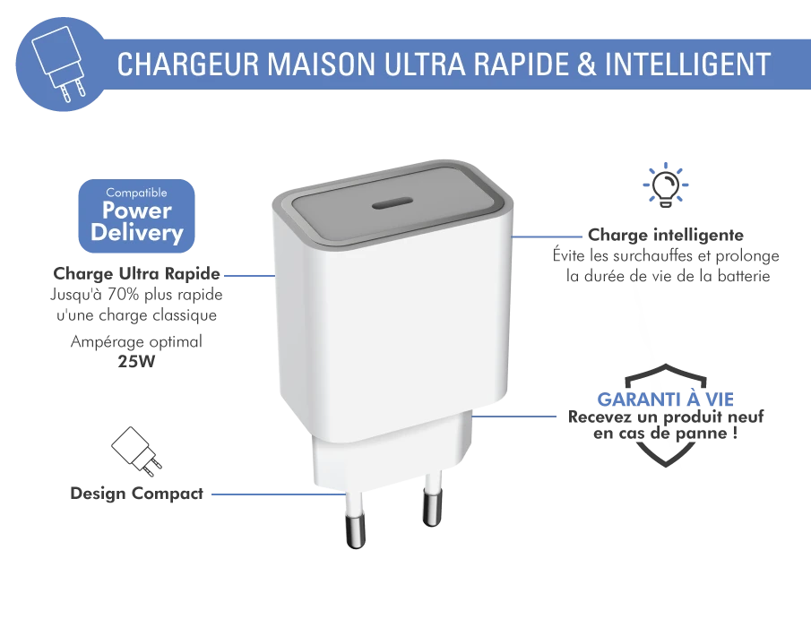 Le chargeur maison Force Power compatible Power Delivery garantit une charge ultra rapide pour vous accompagner efficacement au quotidien.