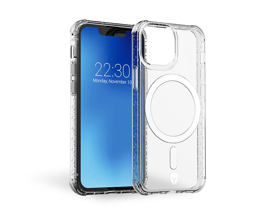 Cette coque a été spécialement conçue pour intéragir avec le nouveau système innovant d’Apple MagSafe. Certifiée Made for Magsafe par Apple, elle offre une garantie de qualité de fabrication et une assurance de compatibilité à long terme avec votre iPhone. Grâce à ses aimants intégrés, vous pourrez fixer la coque sur des appareils conçus pour Magsafe et la détacher aisément.
