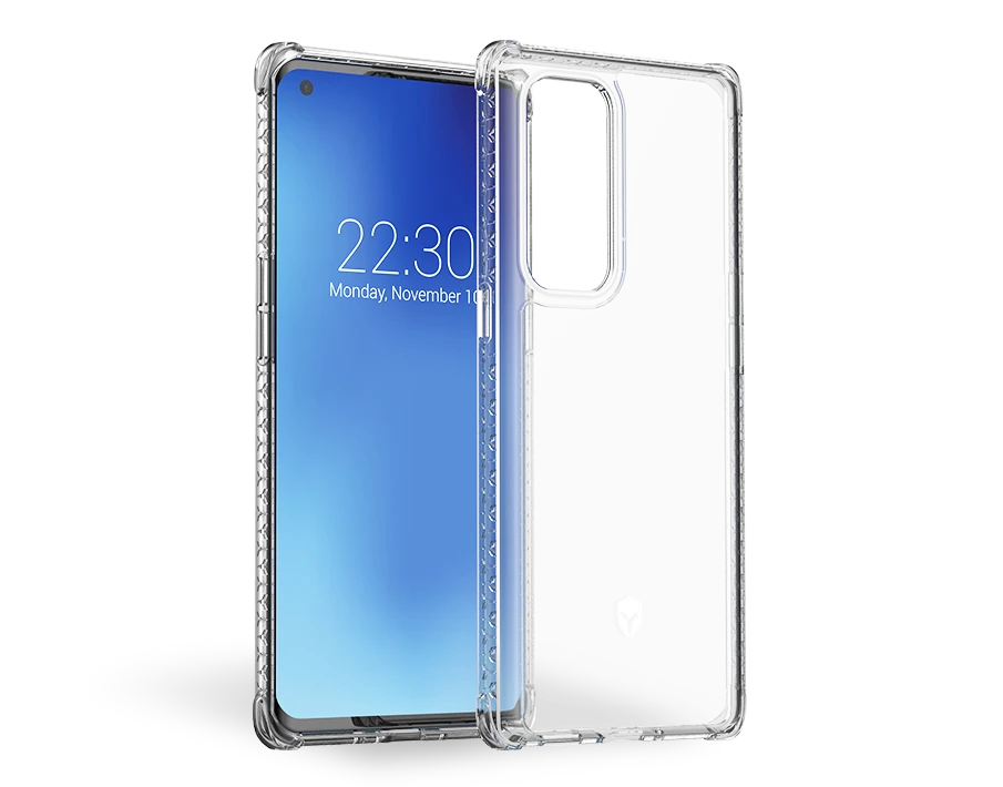 Inserts 3D sur le contour de la coque conçus pour absorber les impacts et disperser l’énergie du choc selon trois axes. Votre mobile est ainsi protégé de tous les côtés.