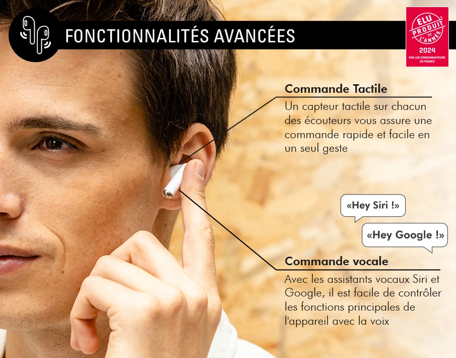 Un capteur tactile sur chacun des écouteurs vous assure une commande rapide et facile en un seul geste. Ecoutez de la musique ou répondez à un appel avec une simple pression du doigt.