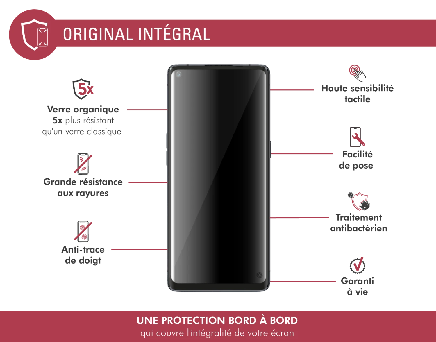 Contenu du pack 1 protège-écran Garanti à vie + 1 kit de nettoyage + 1 adhésif antistatique + 1 kit de pose biodégradable exclusif dédié + 1 carte de garantie à vie