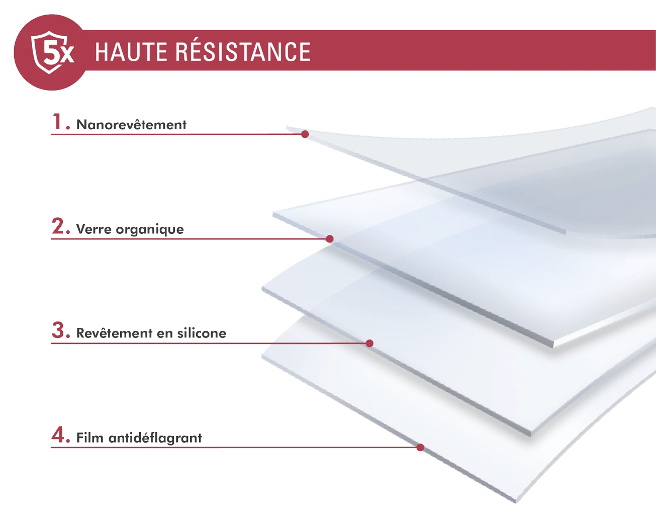 Traitement oléophobique anti-traces de doigts et conception anti-explosion qui évite les fragments dangereux et permet de le retirer facilement.