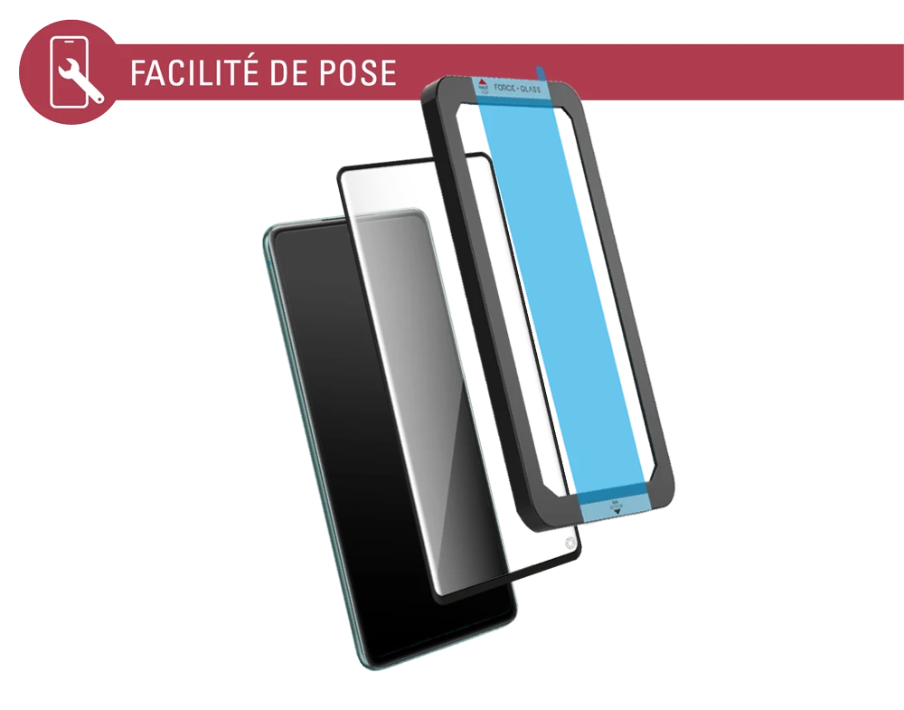 Kit de pose exclusif dédié pour chaque mobile pour une installation simple, rapide et sans bulle.