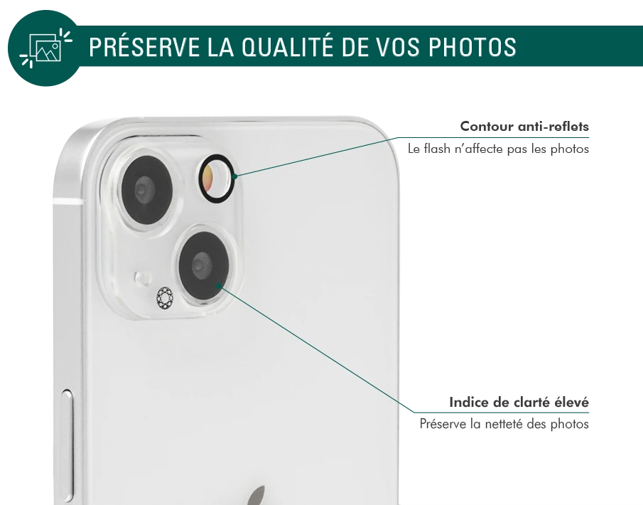 Découpes ajustées parfaitement adaptées pour protéger efficacement l’objectif caméra au dos de votre appareil mobile.