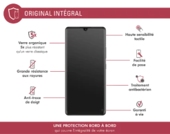 Traitement oléophobique anti-traces de doigts et conception anti-explosion qui évite les fragments dangereux et permet de le retirer facilement. Installation facile et sans loupé Kit de pose exclusif dédié pour chaque mobile pour une installation simple. rapide et sans bulle. Garantie à vie