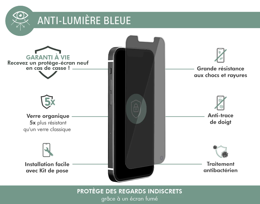 Traitement oléophobique anti-traces de doigts et conception anti-explosion qui évite les fragments dangereux et permet de le retirer facilement.